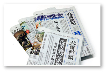 新聞広告は、宅配されることで安定した多数の読者が広告の受け手として期待できます。1日で多くの人に同時に伝えるのに適した広告媒体であり、マスメディアとしての信頼性も高く、商品やサービスなどを詳細に伝えることができます。特に北國新聞をはじめとした地方紙は、各県における普及率も高く広告対象の地域を設定しやすい媒体です。 営業目的、求人募集、お知らせなど、目的別に様々な展開が可能です。